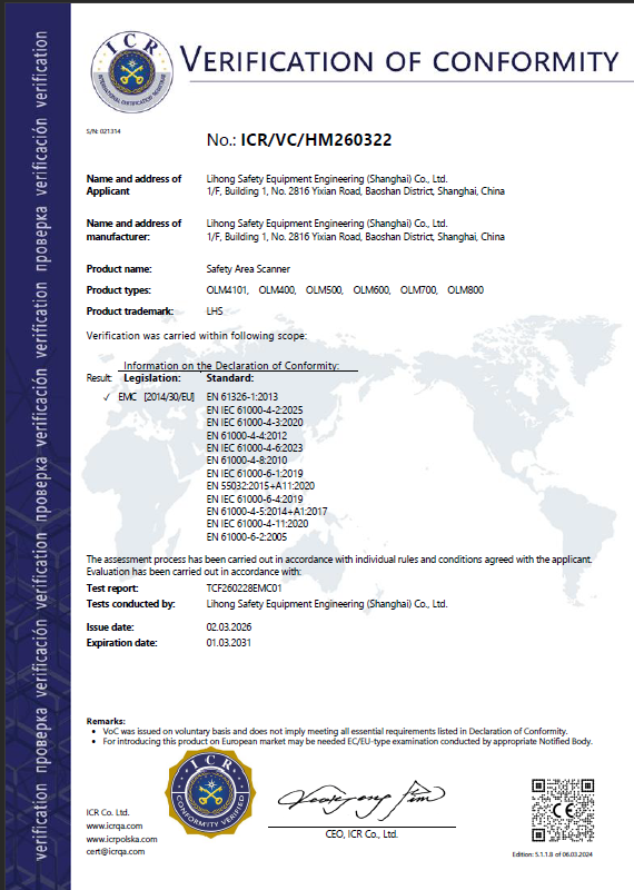 | · 符合IEC 61508/IEC 62061,SIL 2安全等級(jí)標(biāo)準(zhǔn) · 符合ISO 13849 PLd安全等級(jí)標(biāo)準(zhǔn) · 符合IEC 61496 Type3 安全性能要求 · 符合IEC 60825 Class 1 激光安全等級(jí)標(biāo)準(zhǔn) · 配合專用配置軟件使用,可對(duì)OLM500進(jìn)行多達(dá) 64 個(gè)區(qū)域的自由配置 · 最小探測(cè)物直徑≥20mm,最大5米的安全保護(hù)區(qū)域,最遠(yuǎn)20米的警告區(qū)域 · IP65防水防塵能力 |